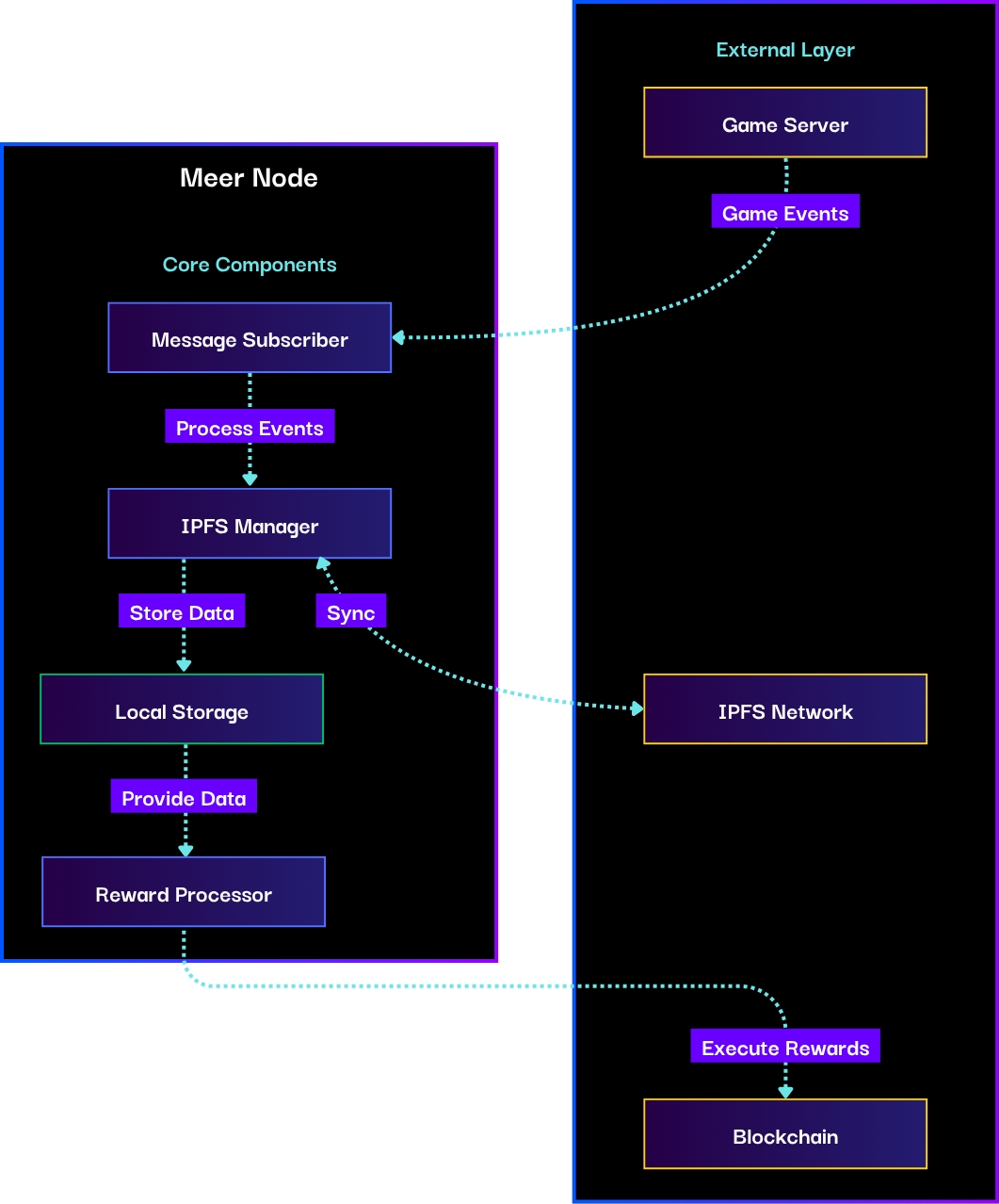 Meer Node는 TikTrix 생태계의 핵심 인프라로서, 게임 데이터의 분산 처리, 저장 및 보상 관리를 담당하는 특화된 노드 시스템입니다. 이 시스템은 탈중앙화된 게임 플랫폼의 확장성과 효율성을 보장하며, 블록체인 기술과 전통적인 게임 시스템을 유기적으로 연결합니다. Meer Node는 플랫폼의 안정성과 신뢰성을 강화하며, 사용자 경험을 향상시키는 데 중요한 역할을 수행합니다.